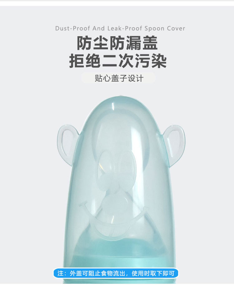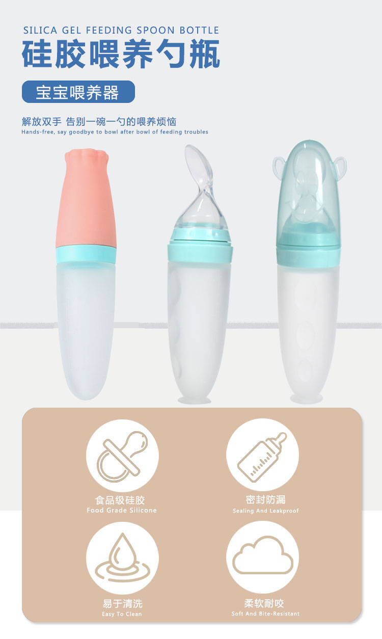 - 產品材質:這款矽膠喂養勺瓶精心選用高品質食品級矽膠作為主體材料,這種矽膠材質不僅安全無毒,還通過了嚴格的健康標準測試,確保在接觸寶寶食物時不會釋放任何有害物質。矽膠的柔軟性讓勺瓶邊緣圓潤光滑,溫柔嗬護寶寶嬌嫩的口腔和牙齦,減少喂食過程中的不適感。