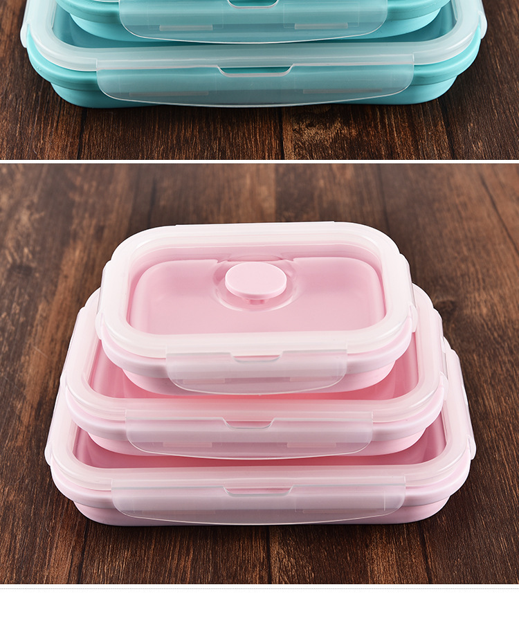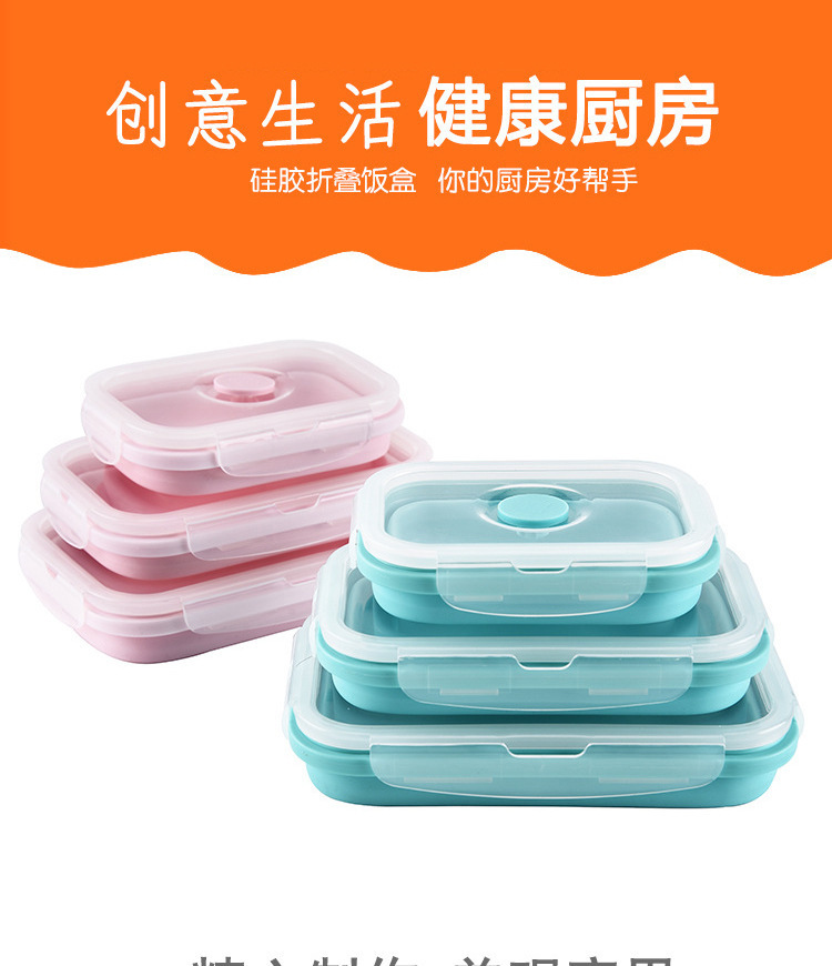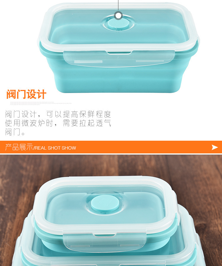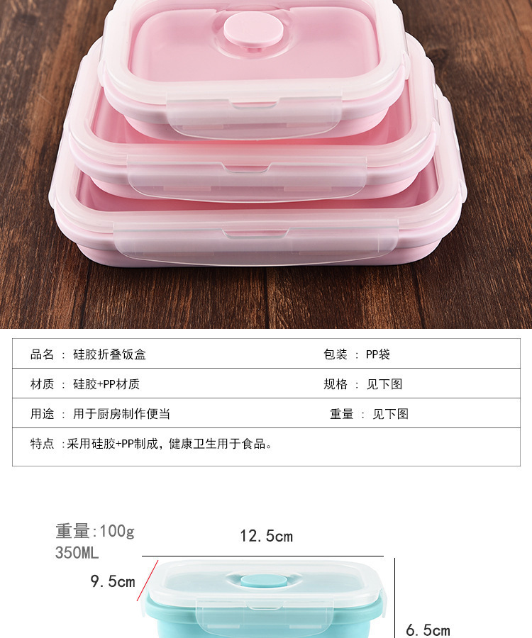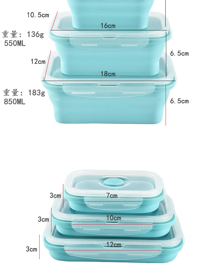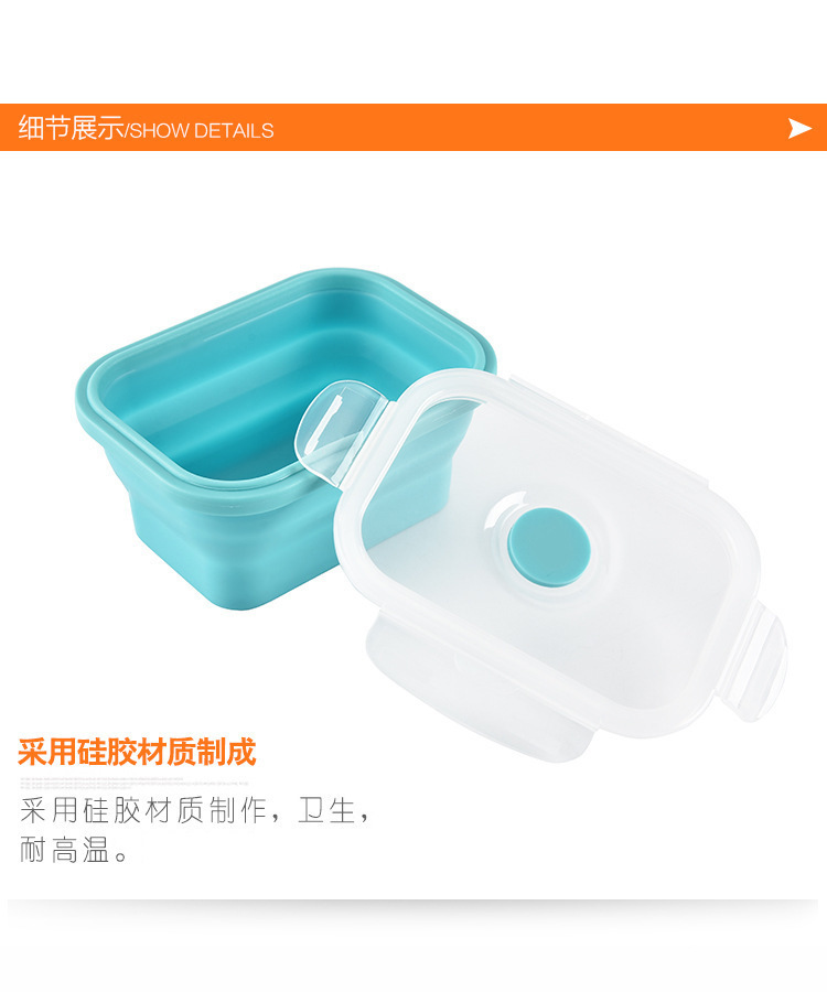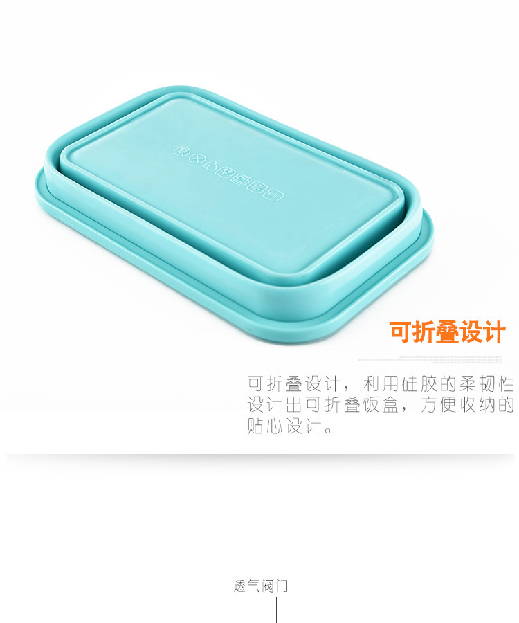 2、可折疊設計,利用矽膠的柔韌特性設計出可以折疊的飯盒,方便收納的貼心設計