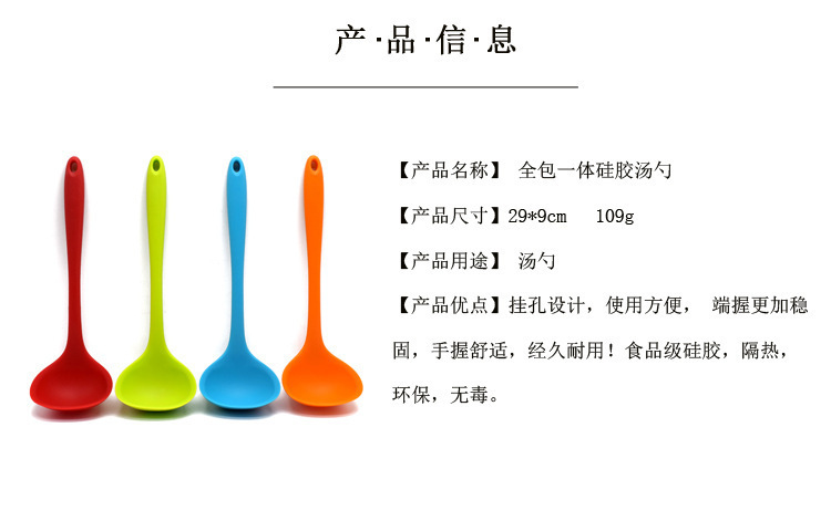 全包一體式矽膠湯勺,一體式矽膠長柄湯勺,全包矽膠大號湯勺