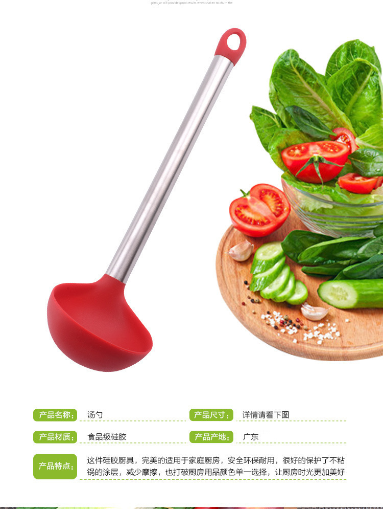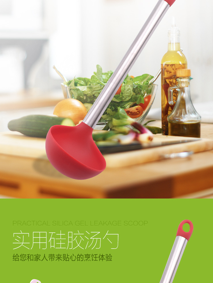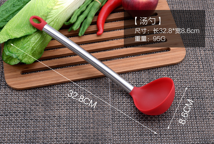 - 不鏽鋼矽膠長柄湯勺,矽膠不鏽鋼長柄湯勺,矽膠不鏽鋼大號湯勺