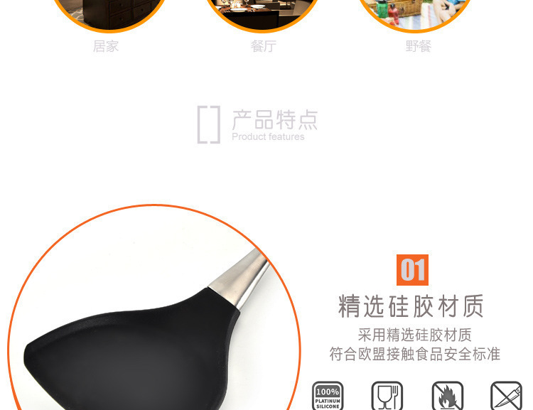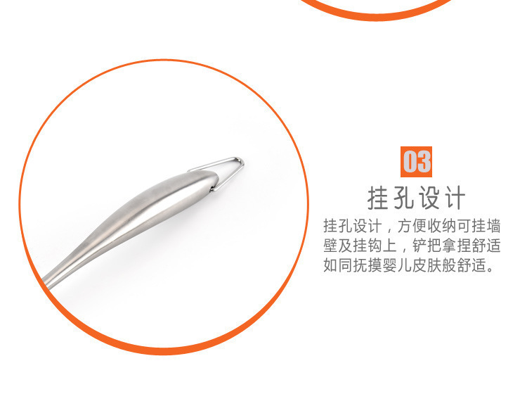 2、手柄采用優質不鏽鋼製作,流線型的手柄設計,增加了鍋鏟本事的強度,防滑防燙,握感舒適