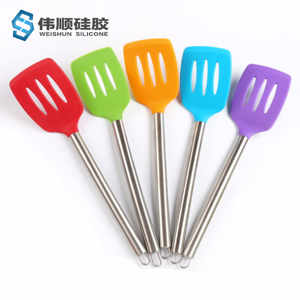 不鏽鋼柄矽膠漏鏟,不鏽鋼長柄矽膠漏鏟,不鏽鋼空心炒菜漏鏟