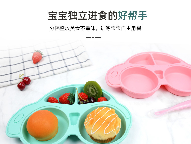 產品名稱:小車矽膠分格餐盤寶寶吃飯食品級安全無毒無味卡通小汽車兒童餐盤