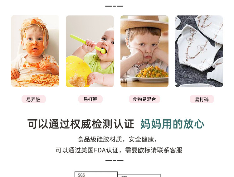 食品級矽膠,可含雙酚A、PVC安全性無毒性,耐高溫-20 ℃-120 ℃,裝燙一點兒的食材也徹底OK!有時,小孩吃著吃著就一不小心把矽膠餐盤弄翻了。小汽車選用獨特止滑設計構思,可密不可分迎合、死死地吸咐在餐桌表層,避免一瞬間滑掉及反而。